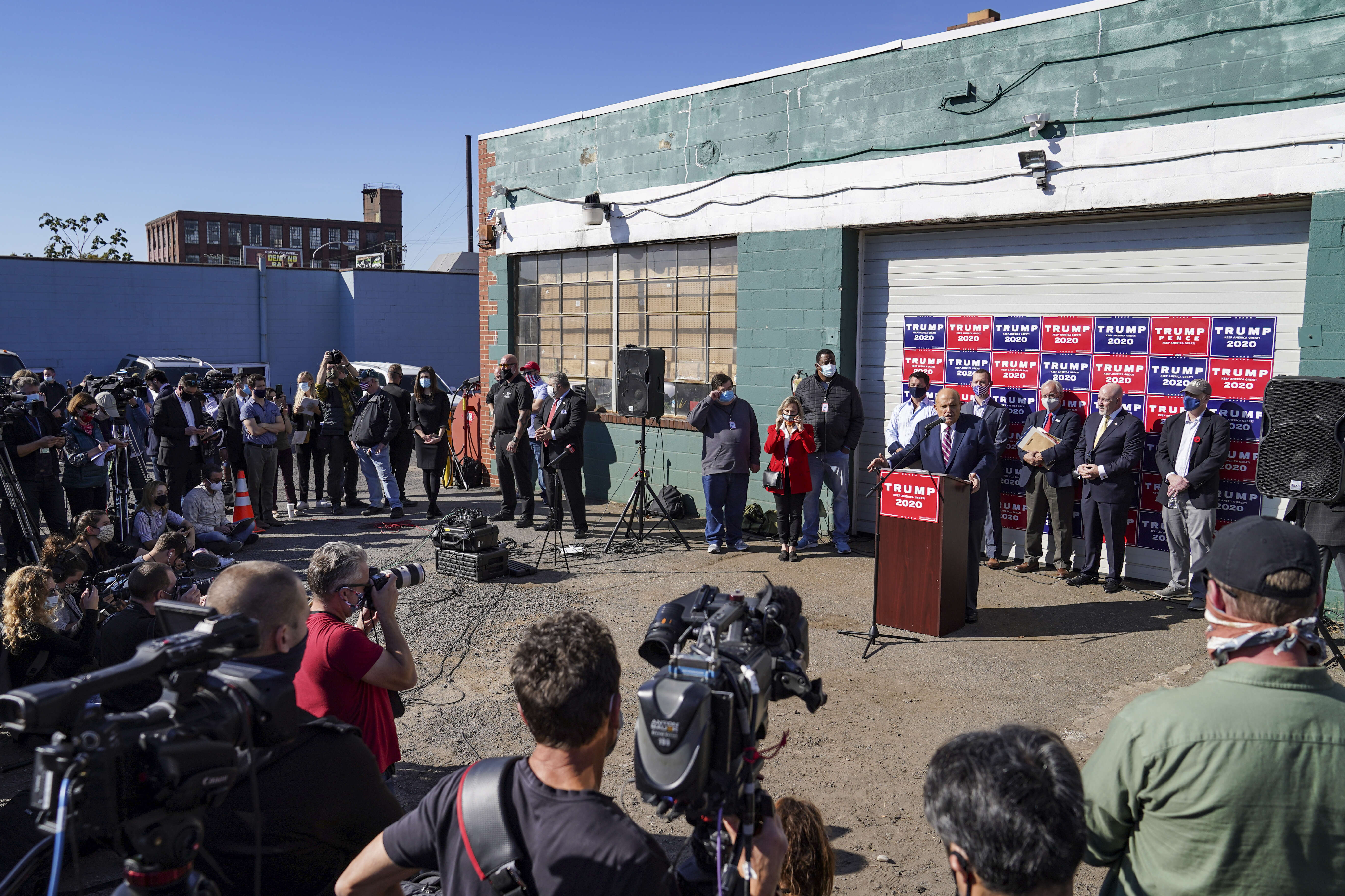 President trump's personal lawyer, rudy giuliani, held a press conference thursday where he repeated a series of baseless allegations as. Giuliani was the primary mouthpiece for trump's lies after the 2020 election, standing at a press conference in front of four seasons total landscaping outside philadelphia on the day the race was called for biden and saying they would challenge what he claimed was a vast conspiracy by democrats. Trump lawyer rudy giuliani speaks to the media at a press conference held in the rear parking lot of a landscaping company in philadelphia on saturday. In hindsight, the hastily arranged news conference featuring rudy giuliani, the president's personal lawyer, just minutes after joe biden had been it will be held at four seasons total landscaping — no relation with the hotel. but by then, many on social media were already delighting in a booking. The real four seasons quickly issued a tweet that they were not hosting the press conference, distancing themselves from the trump trainwreck